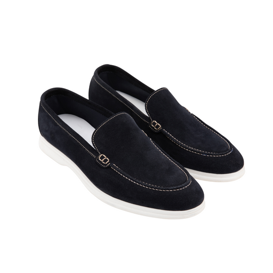 Santorini Sneaker in Grey Lux Suede & Navy Leather