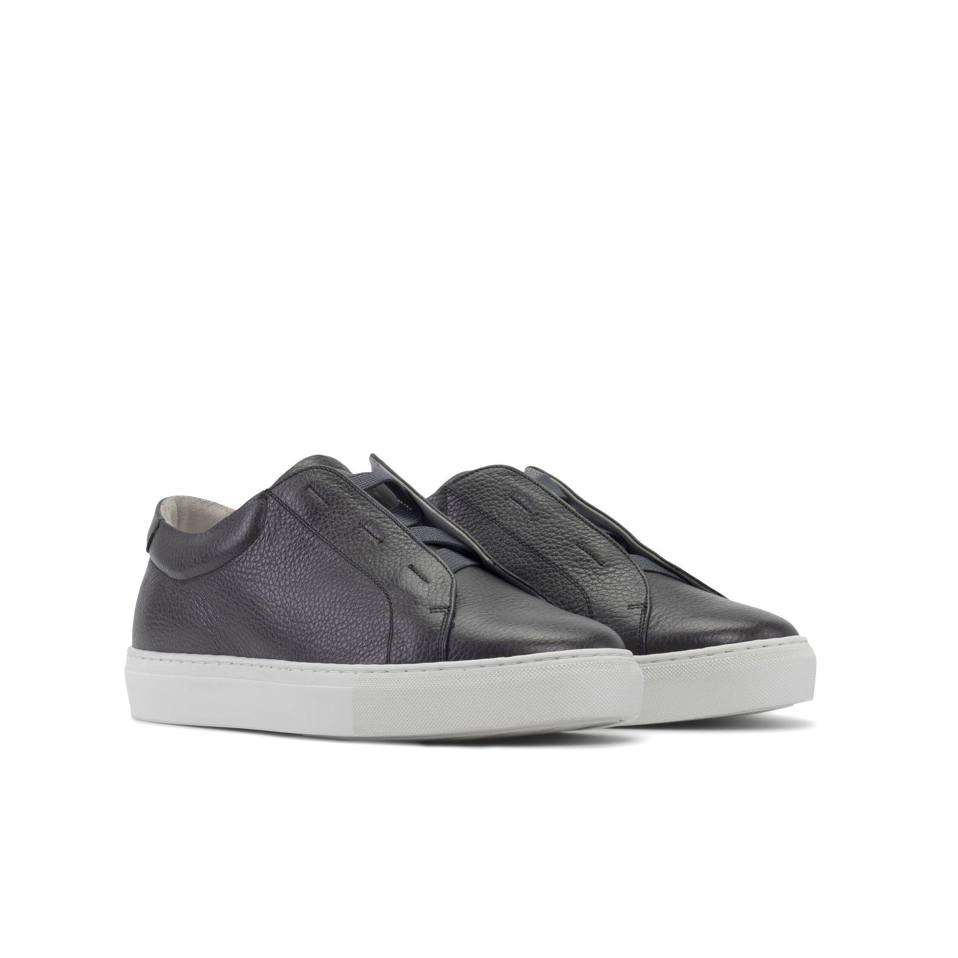 Handmade in Spain. A luxury slip-on trainer crafted with full-grain European leather, featuring Fassona’s signature raised triple-elastic design and a sculpted white outsole. Designed for effortless movement and quiet luxury.